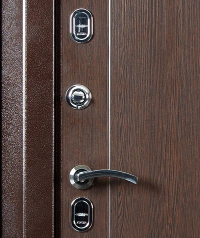 Установлены: сувальдный замок "KALE", сувальдный замок "ГАРДИАН", ночная задвижка, эксцентрик, ручки и глазок.