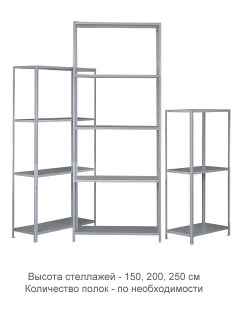 Среди достоинств данного вида мебели отметим возможность соединения нескольких стеллажей в линию, с разными уровнями установки полок, что позволяет организовать вместительную стеллажную систему для склада или любого обширного помещения.